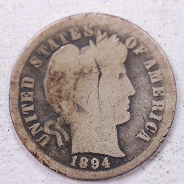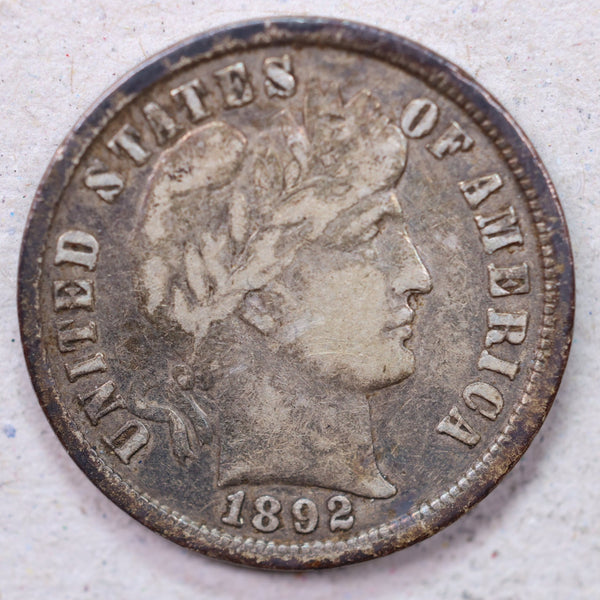 1892 Barber Silver Dime, Very Good Plus, Circulated Coin, Store Sale #DE663.