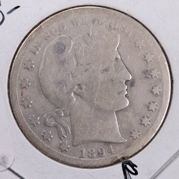 1893 Barber Silver Half Dollar., Counter Stamped "J.B.M. A.U. Circulated Coin., Store #HR126
