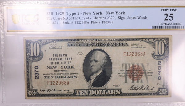1882 $10, Brown Back, New York, N.Y., National Note, PCGS VF-30 #NBN006.