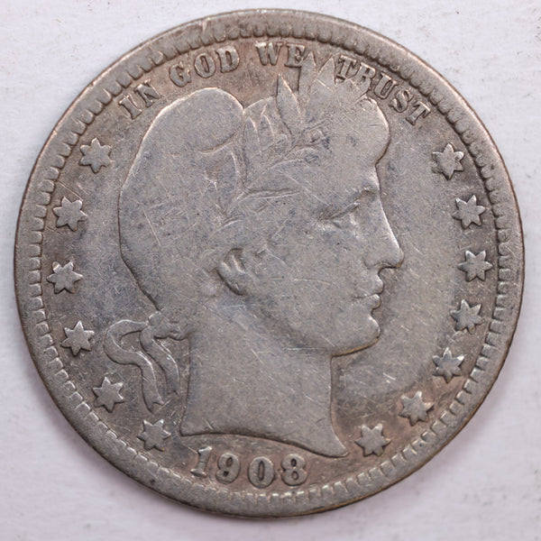 1902-S Barber (Liberty Head) Silver Quarter, Circulated Coin, Store #QR983