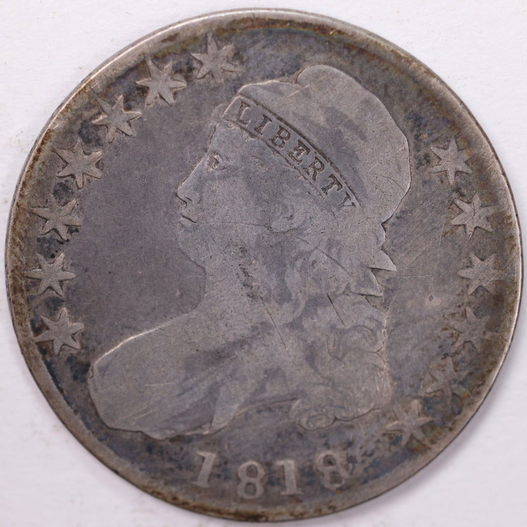 1818 Cap Bust Half Dollar, Very Good Circulated Coin, Store #H818.01
