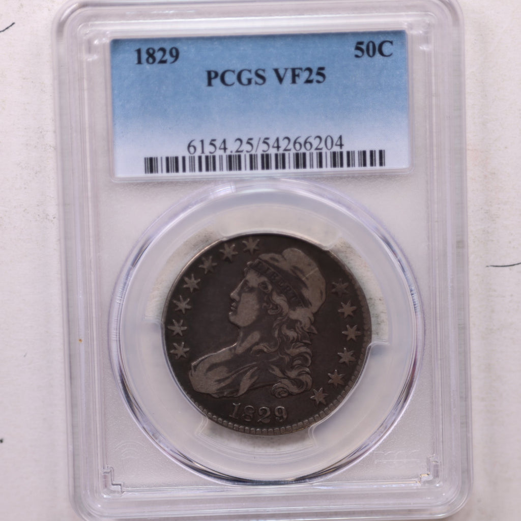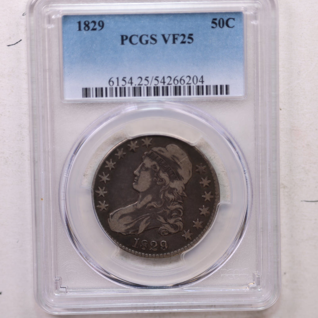 1829 Cap Bust Silver Half Dollar, PCGS AU-50, Circulated Coin. Store #GHR106.