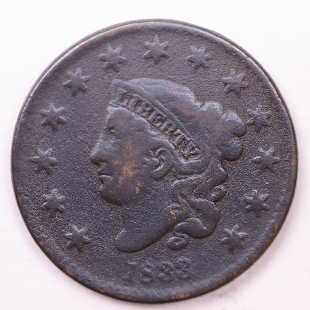 1833 Large Cent., Affordable Circulated Coin Store Sale #35411