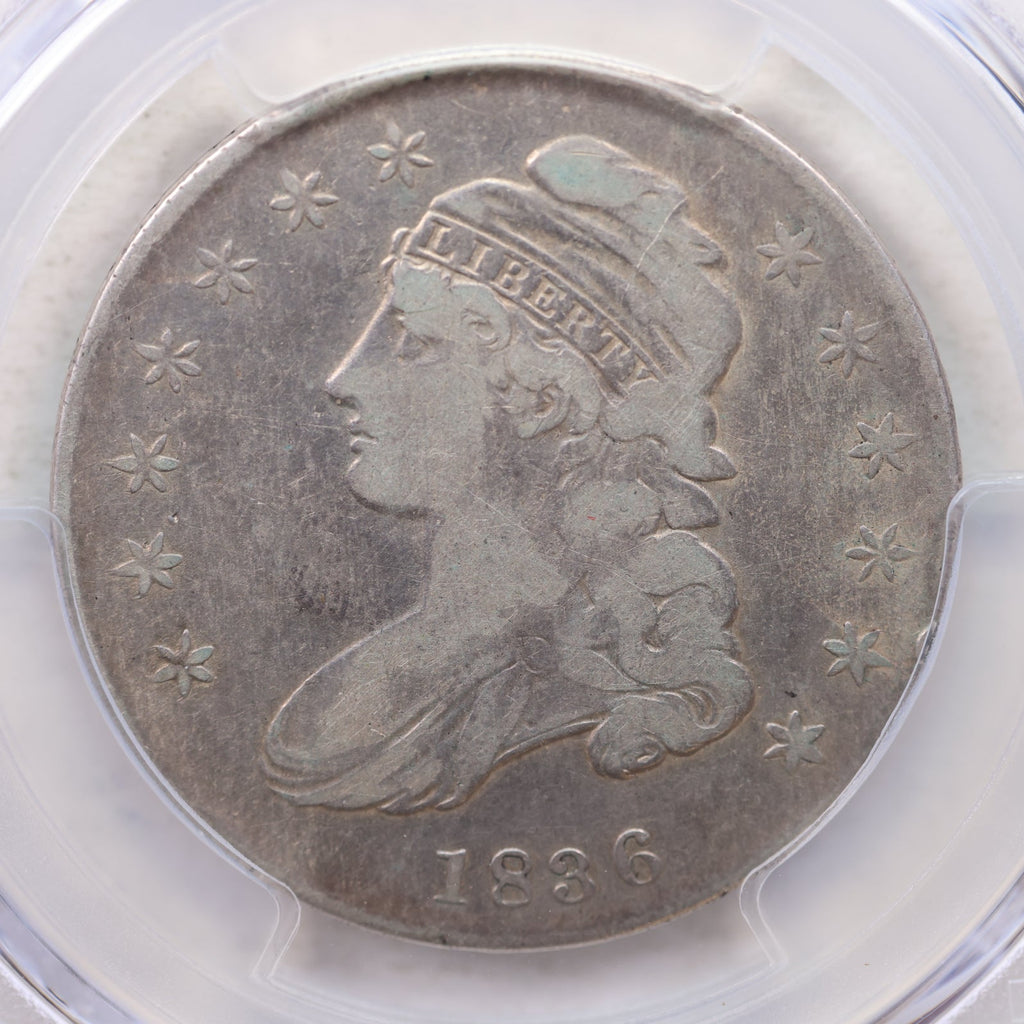 1836 Cap Bust Silver Half Dollar, PCGS F-15, Lettered Edge. Store #GHR107.