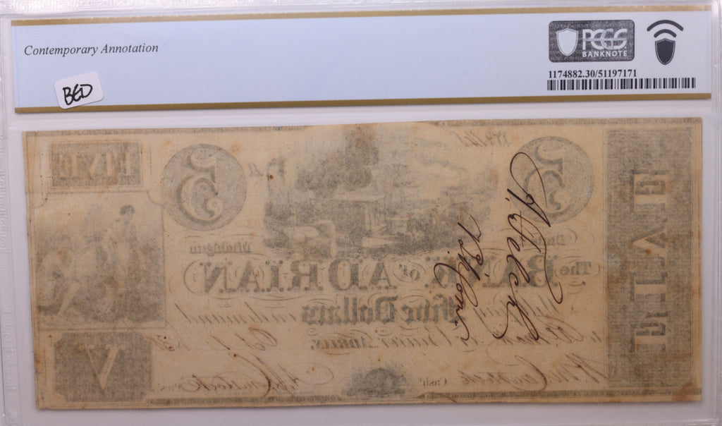 1838 $5, Adrian, Michigan., Obsolete Currency., PCGS VF-30., Store #GMI081.