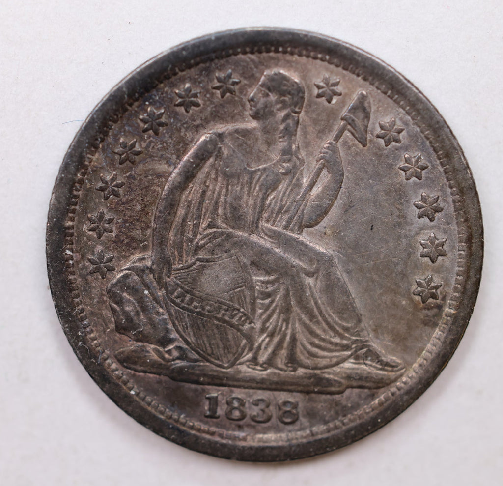 1838 Seated Liberty Dime, Large Stars, Circulated Coin, Store Sale #DE671.