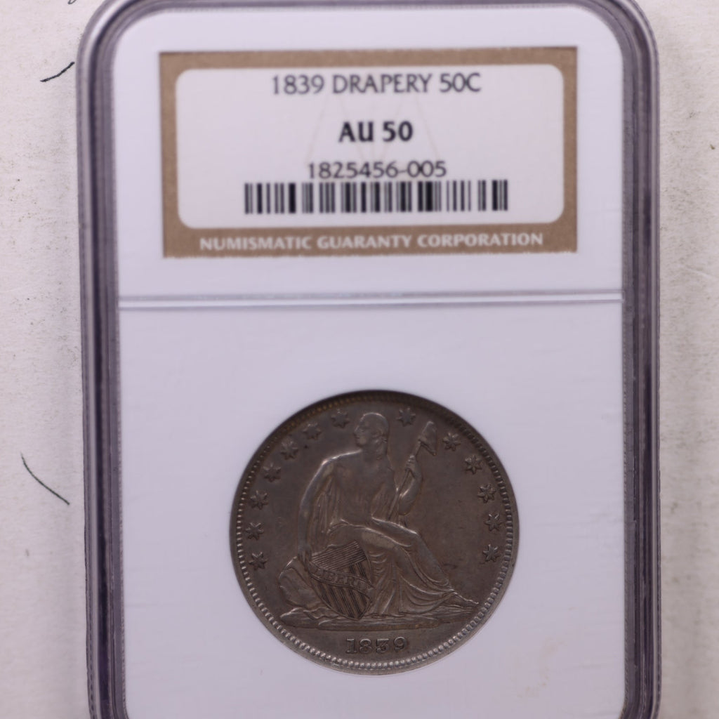 1839 Seated Liberty Half Dollar, Nice Eye Appeal Coin, NGC AU-50. Store #GHR113.
