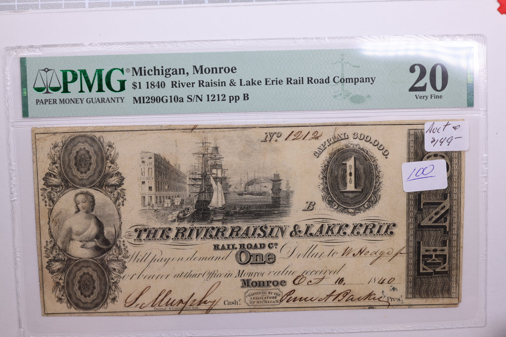 1840 $1, Monroe Michigan., Obsolete Currency., PMG VF20., Store #GMI073