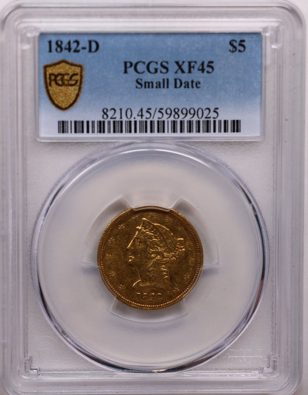 1842-D $5, Gold Half Eagle, Small Date, Circulated Coin, PCGS XF-45, Store Sale #G0149.