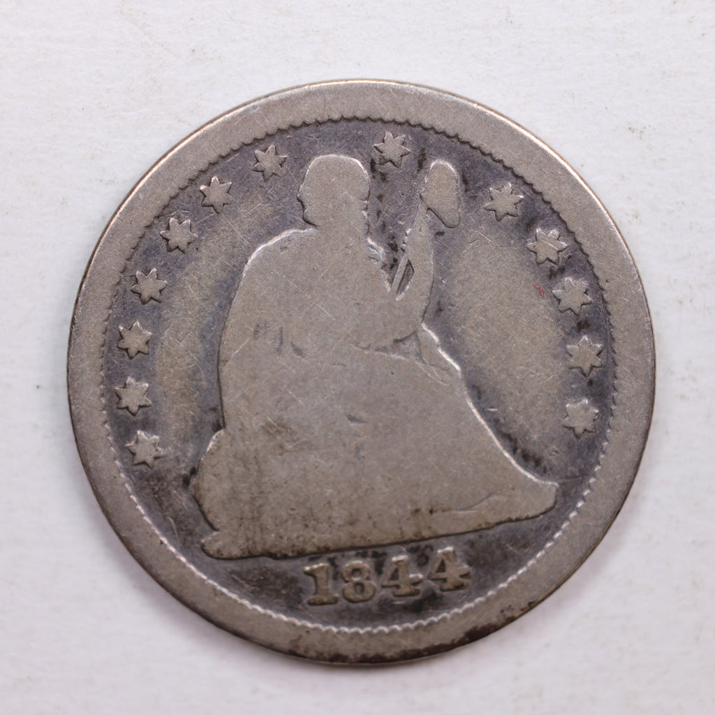 1844-O Seated Liberty Quarter., About Good Circulated Silver Coin., Store #QR533.
