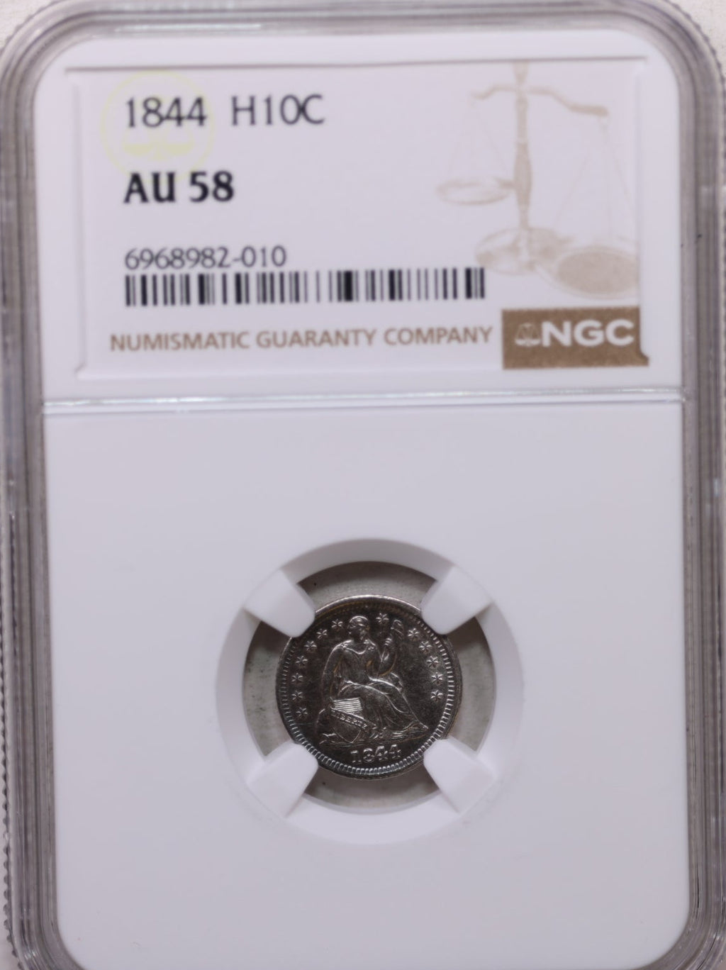 1844 Seated Liberty Half Dime, NGC Certified AU-58, Store Sale #GHE009.