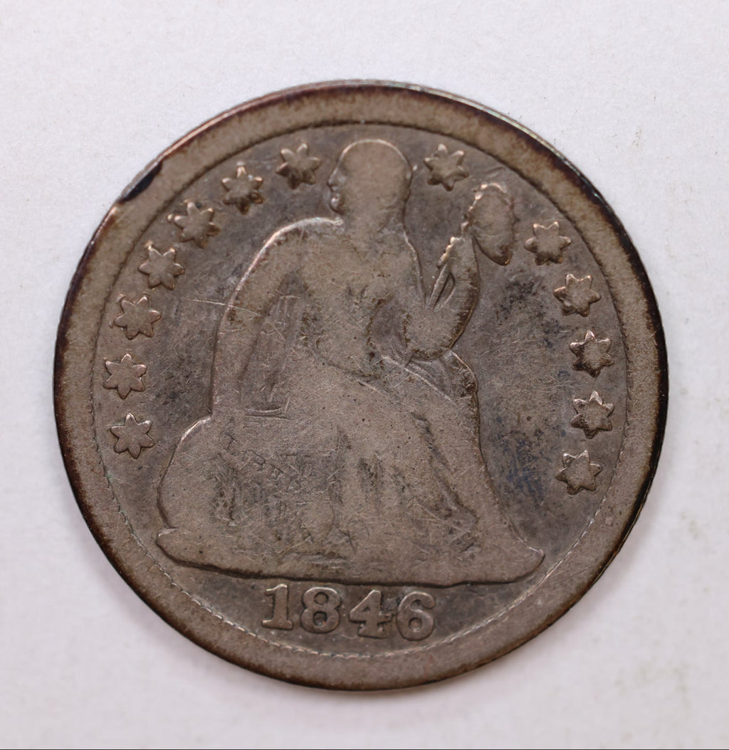 1846 Seated Liberty Dime, Collectible Circulated Coin, Store Sale #DE687.