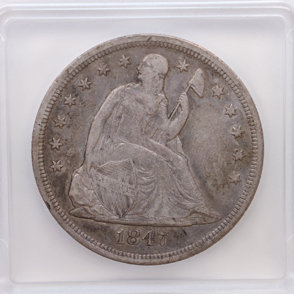 1847 Seated Liberty Silver Dollar, Circulated, ICG EF-45, Store #GDR0296.