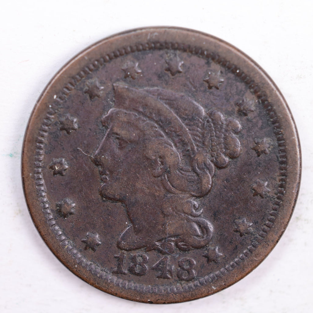 1848 Braided Hair Large Cent, Fine Circulated Coin, Store #CT0049