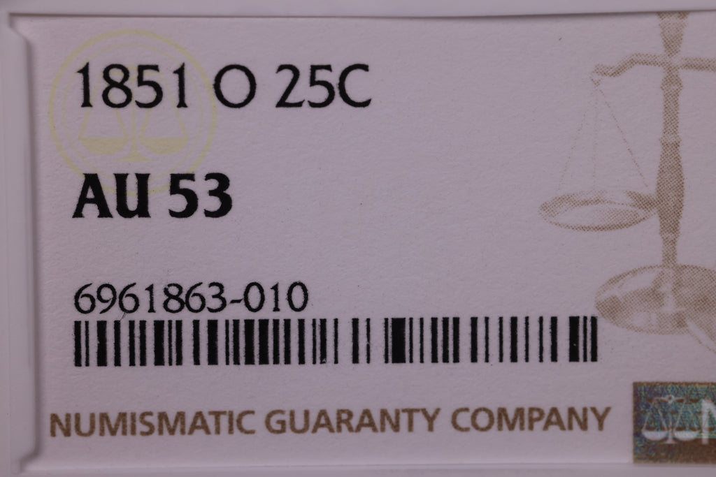 1851-O Seated Liberty Quarter., Very Tough Date., NGC AU-53., Store #0878