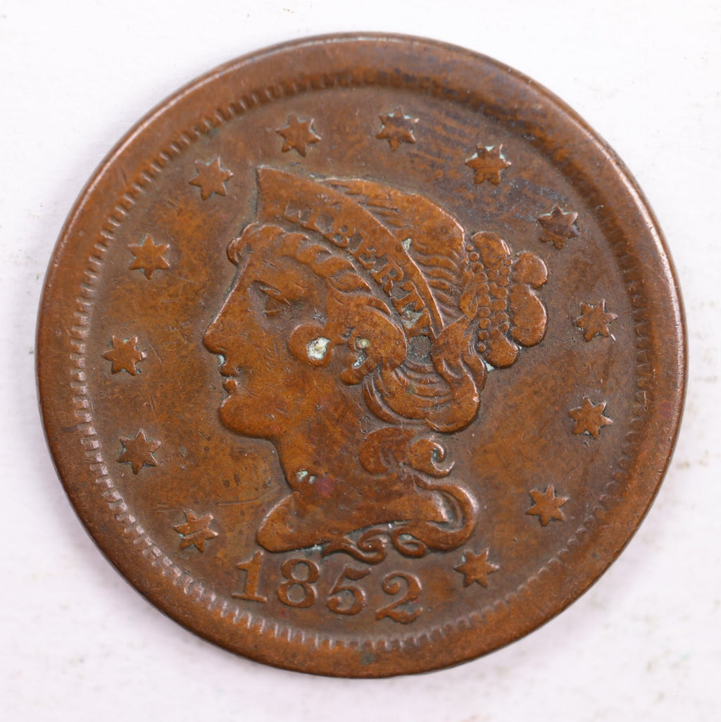1852 Braided Hair Large Cent, Fine Circulated Coin, Store Sale #CT0169