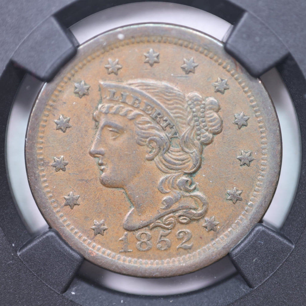 1852 Braided Hair Large Cent, NGCX Certified 8.5, About Uncirculated, Store CT0004