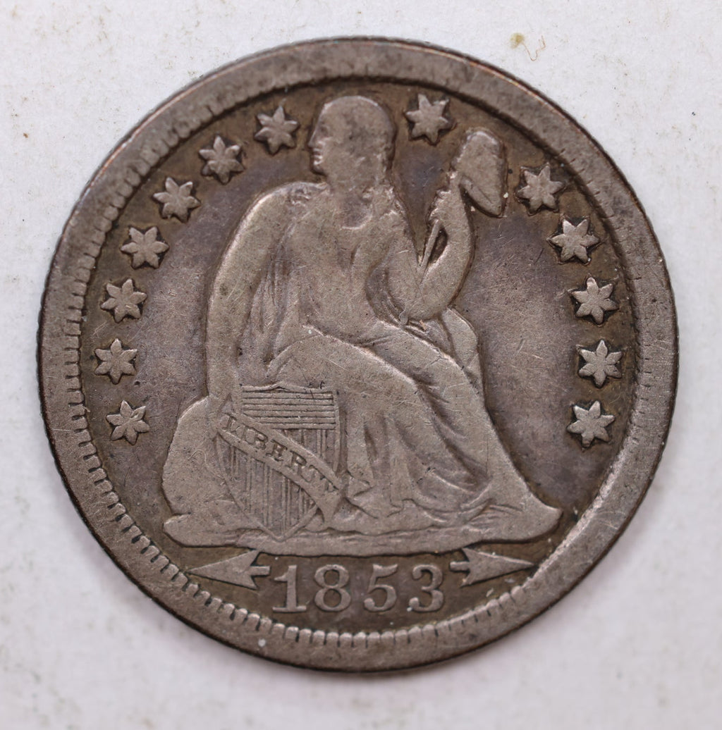 1853-O Seated Liberty Dime, Collectible Circulated Coin, Store Sale #DE700.