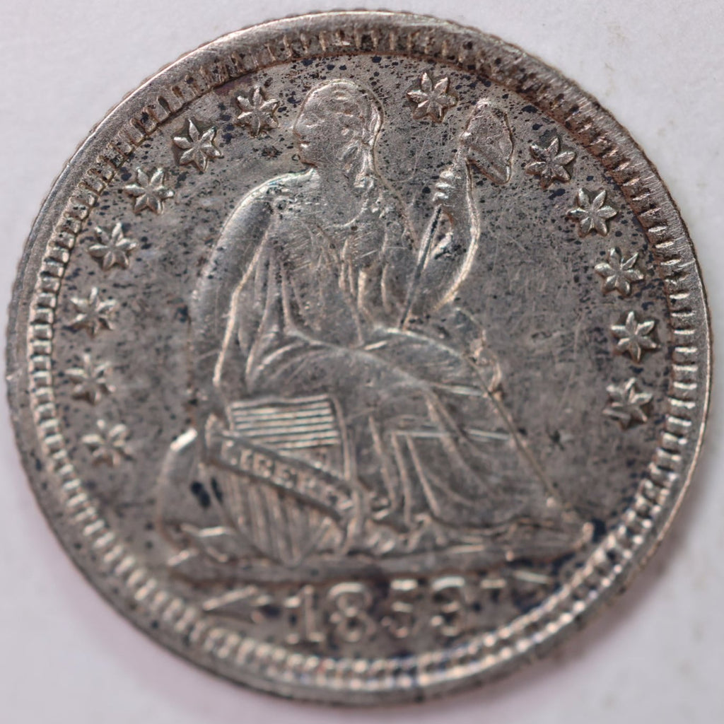 1853, Seated Half Dime, Very Good+ Circulated Coin, Store #M853.02