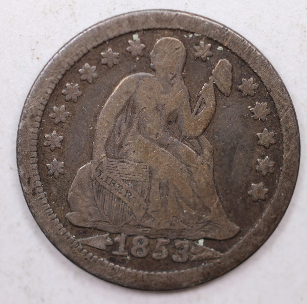 1853 Seated Liberty Dime, -With Arrows-, Circulated Coin, Store Sale #DE699.