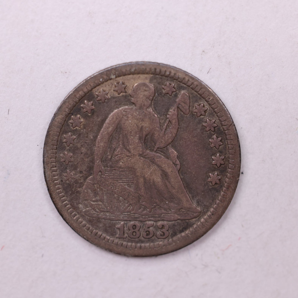 1853 Seated Liberty Half Dime., VF+ Coin., Store Sale #18898