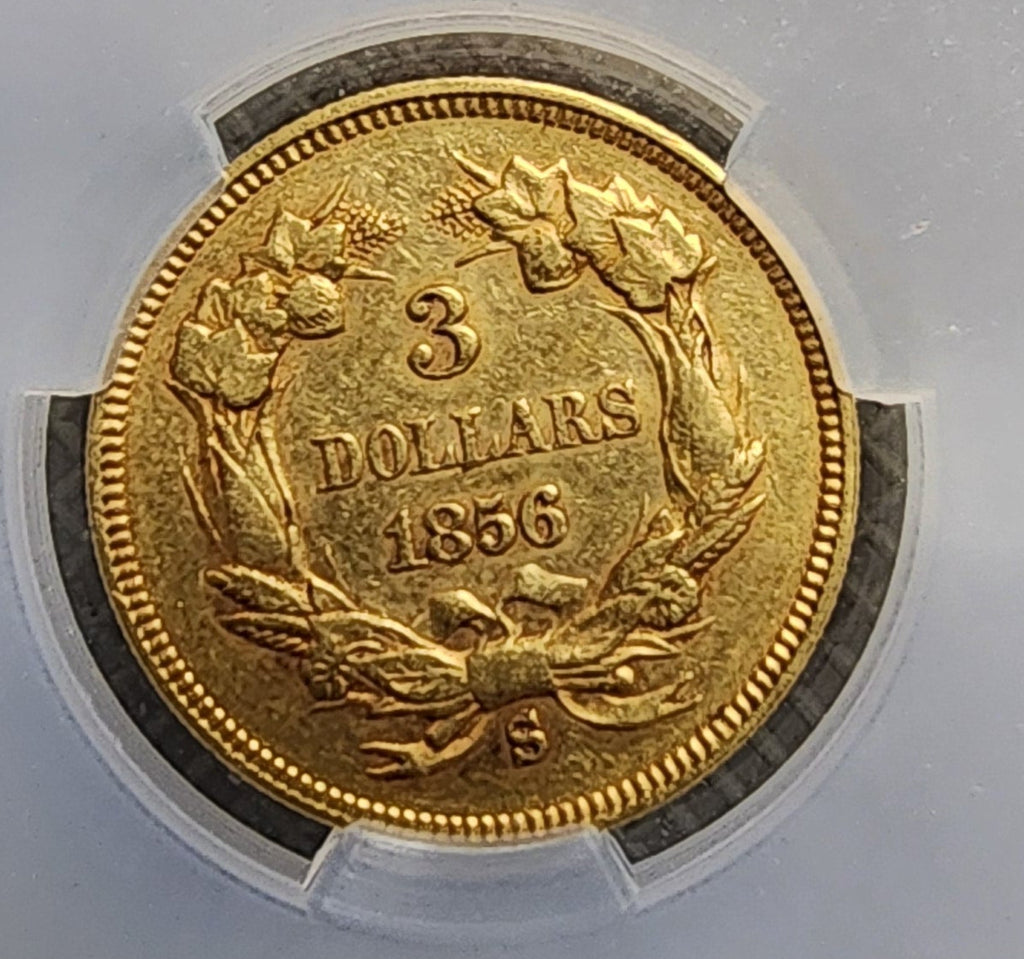 1856-S $3, Indian Princess Head, "Highly Collectible", CAC Graded AU50, Store #G0002.