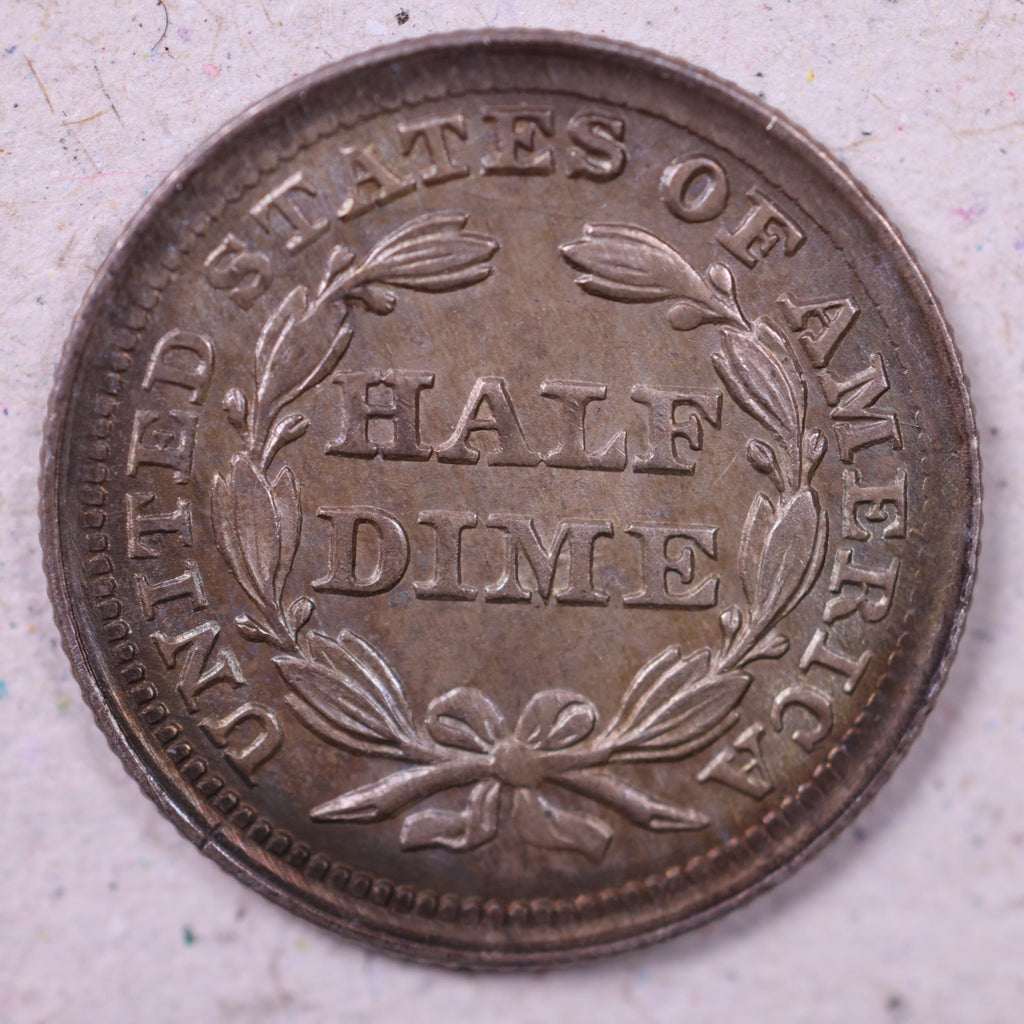 1857 Seated Liberty Half Dime., Mint State., Uncirculated Coin., Store#1123
