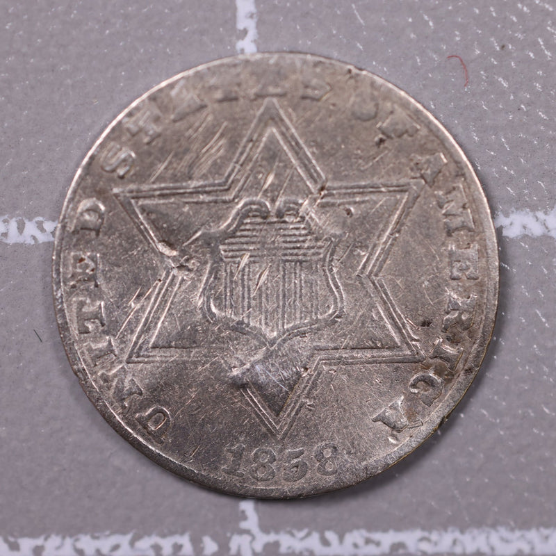 1858 3 Cent Silver., Fine Detailed Coin., Store #0939