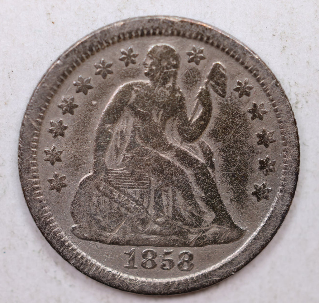1858-O Seated Liberty Dime, Collectible Circulated Details, Store Sale #DE711