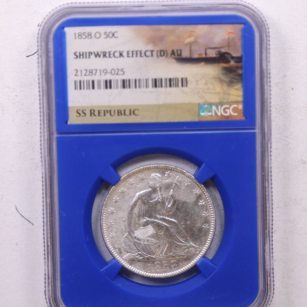 1858-O Seated Liberty Half Dollar, 'SHIPWRECK EFFECT' NGC AU. Store #GHR108.