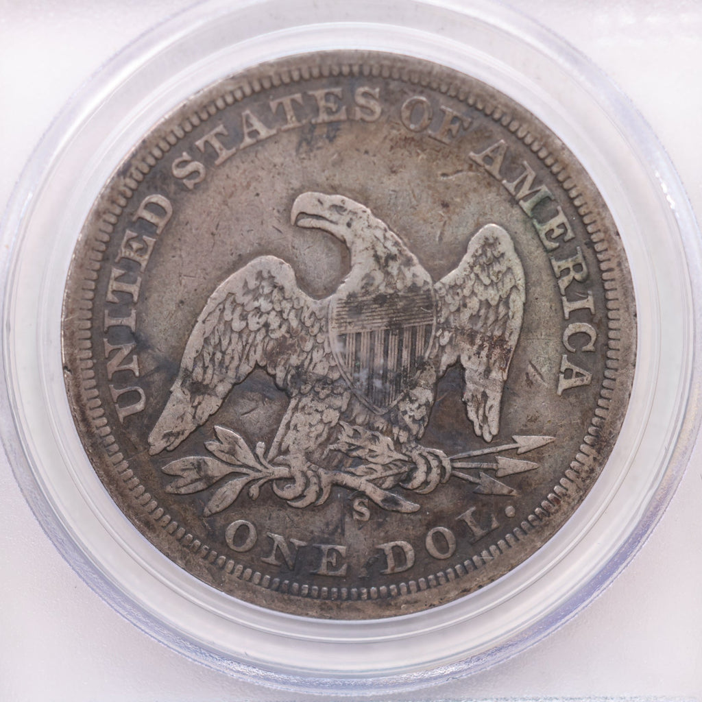 1859-S Seated Liberty Silver Dollar, Circulated, PCGS Fine-12, Store #GDR0299.