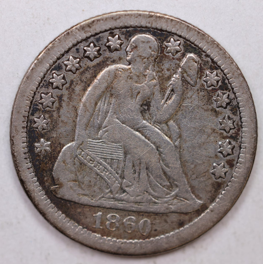 1860-S Seated Liberty Dime, Collectible Circulated Coin, Store Sale #DE716.