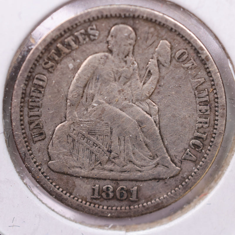 1861-S Seated Liberty Silver Dime., X.F., Details., Store Sale #19075