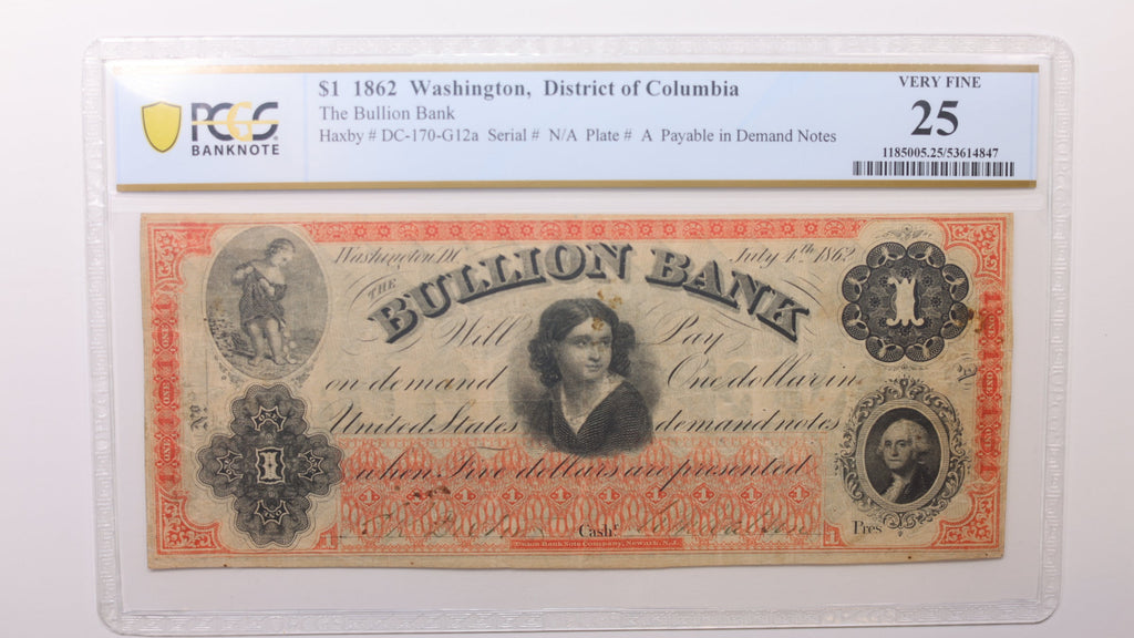 1862 $1, Washington, D.C. Obsolete Currency , PCGS VF25, STORE #GDC070.