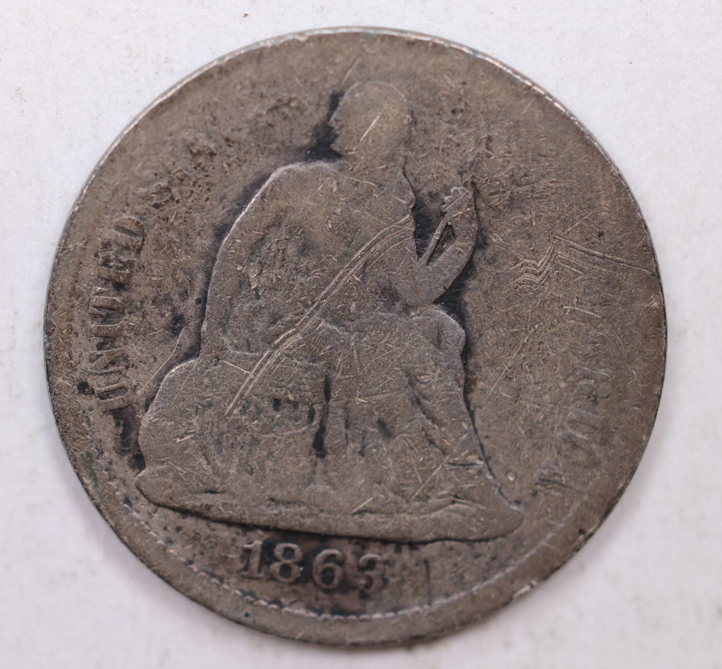 1863-S Seated Liberty Dime, Collectible Circulated Coin, Store Sale #DE724.