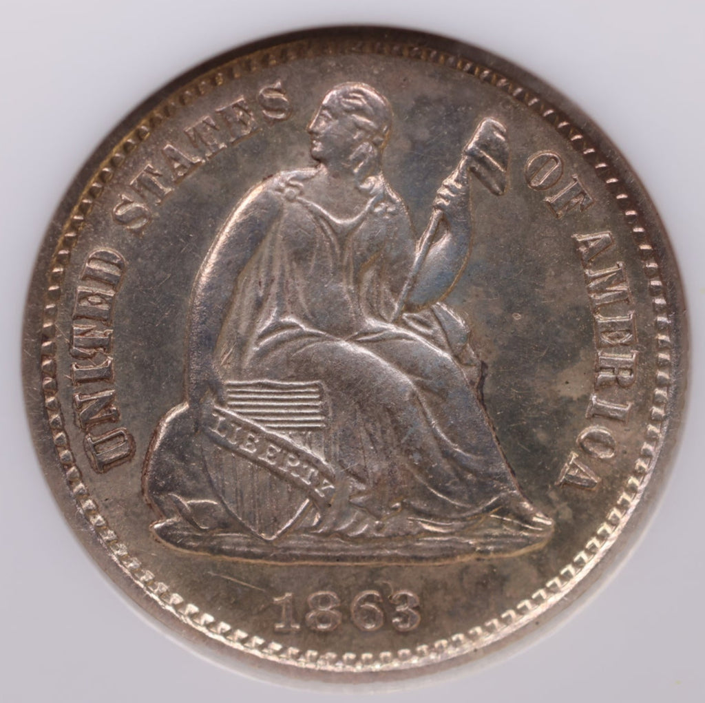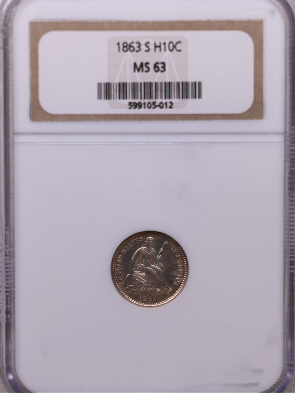 1863-S Seated Liberty Half Dime, NGC Graded, MS-63, Store #GHE002