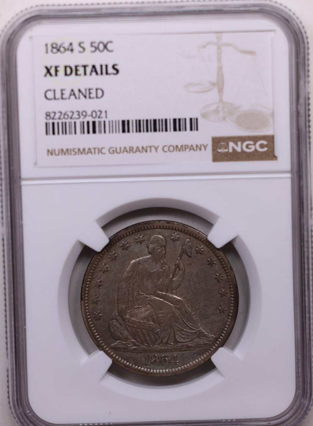 1864-S Seated Liberty Half Dollar., NGC X.F, Cleaned, Affordable Coin Store Sale #HR074