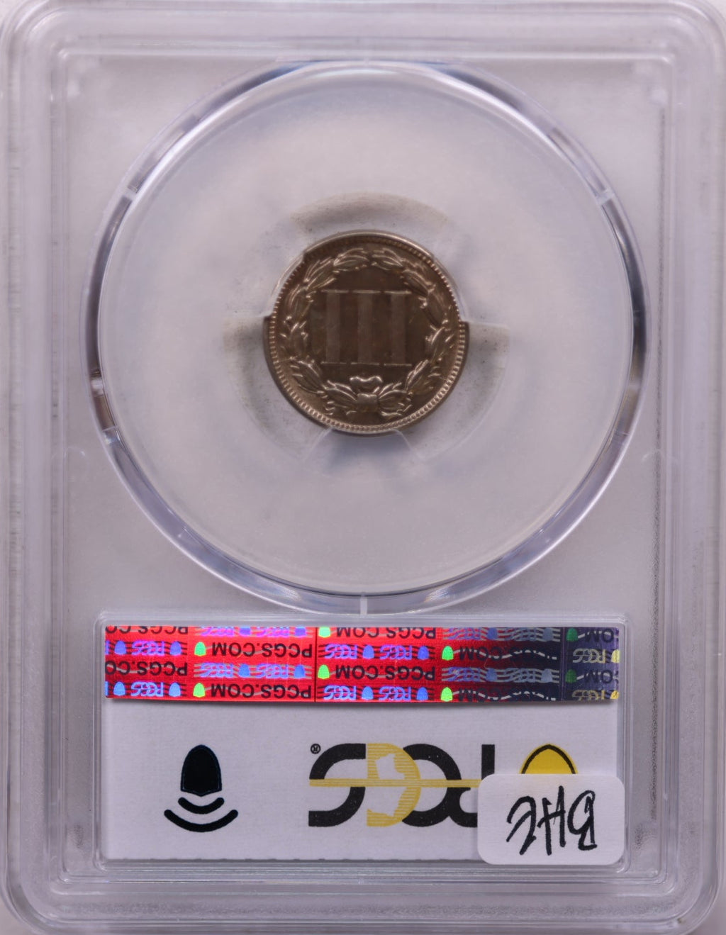 1866 Three Cent Copper Nickel., Uncirculated., PCGS AU-58, Store #3C0005.