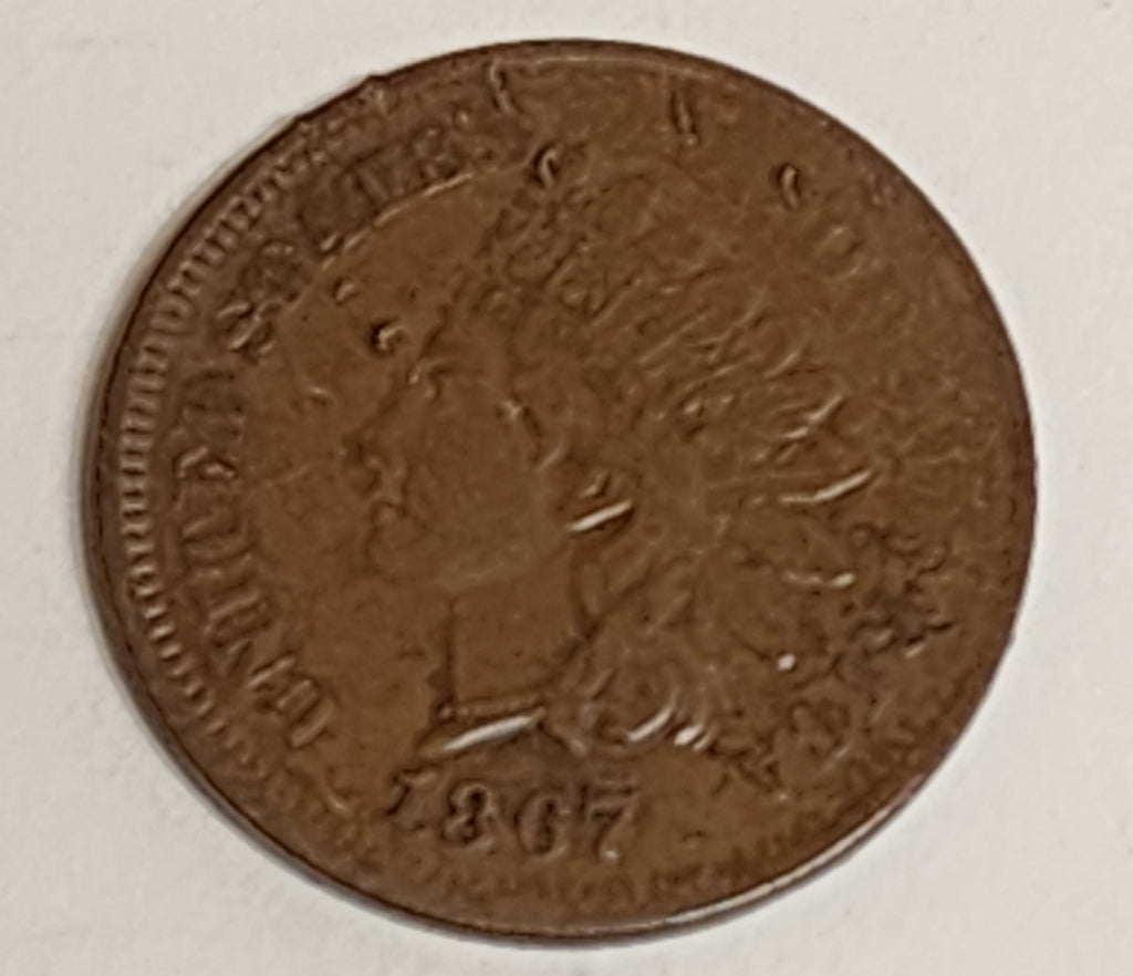 1867 Indian Head Cent, Overdate, Extra Fine Circulated Coin, Store #CT0545