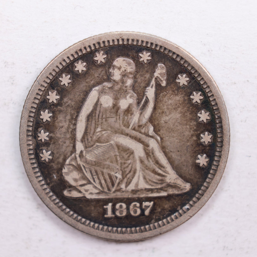 1867 Seated Liberty Quarter., Very Fine Circulated Coin., Store #QR572.