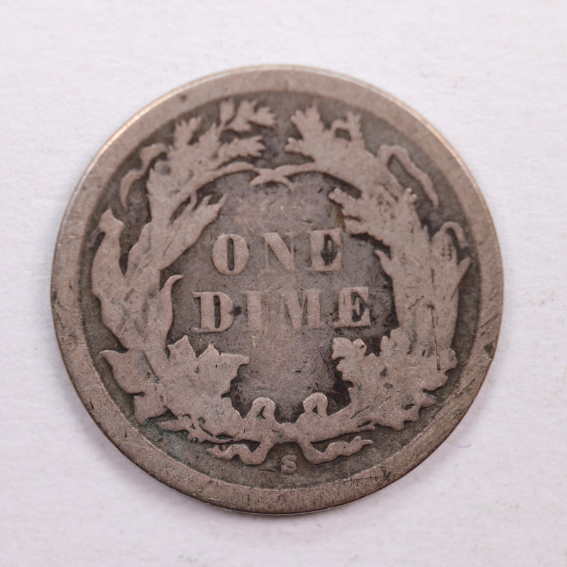 1868-S Seated Liberty Dime., Very Good Circulated Coin., Store Sale #DE0367.