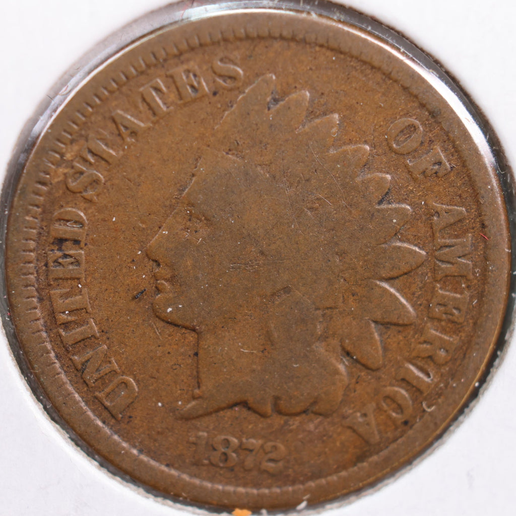 1872 Indian Head Cent, Good Circulated Coin, Store #CT0780