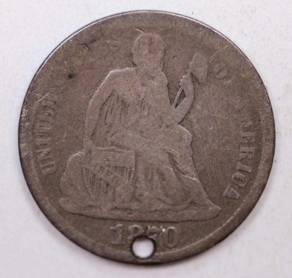 1870-S Seated Liberty Dime, Collectible Circulated Detailed Coin, Store Sale #DE736.