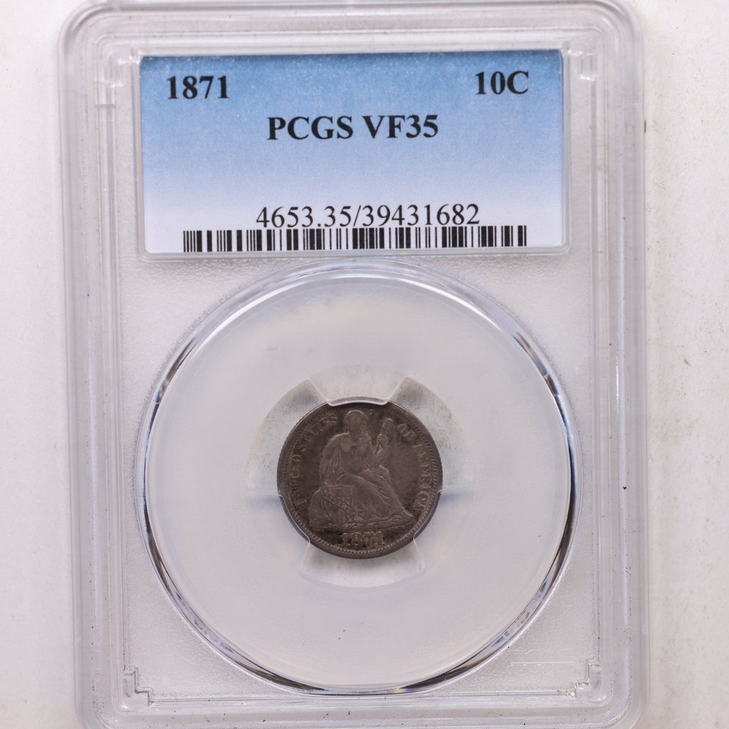 1871 Seated Liberty Silver Dime, PCGS VF-35, Store Sale #GDE027.