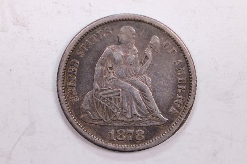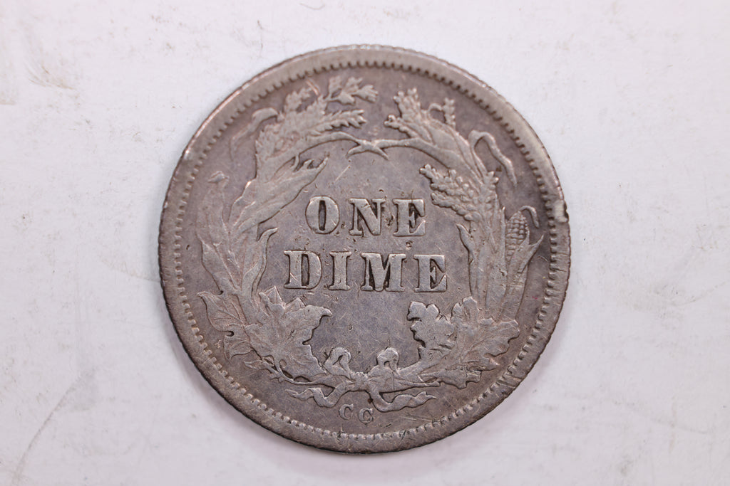 1878-CC Seated Liberty Dime., About Uncirculated Details., Coin., STORE #DE0086