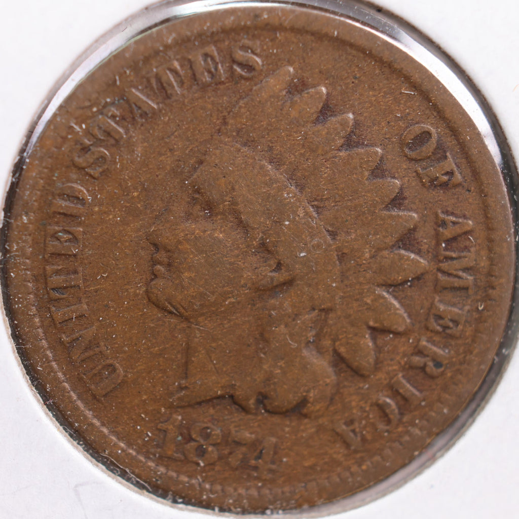 1874 Indian Head Cent, Very Good+ Circulated Coin, Store #CT0791