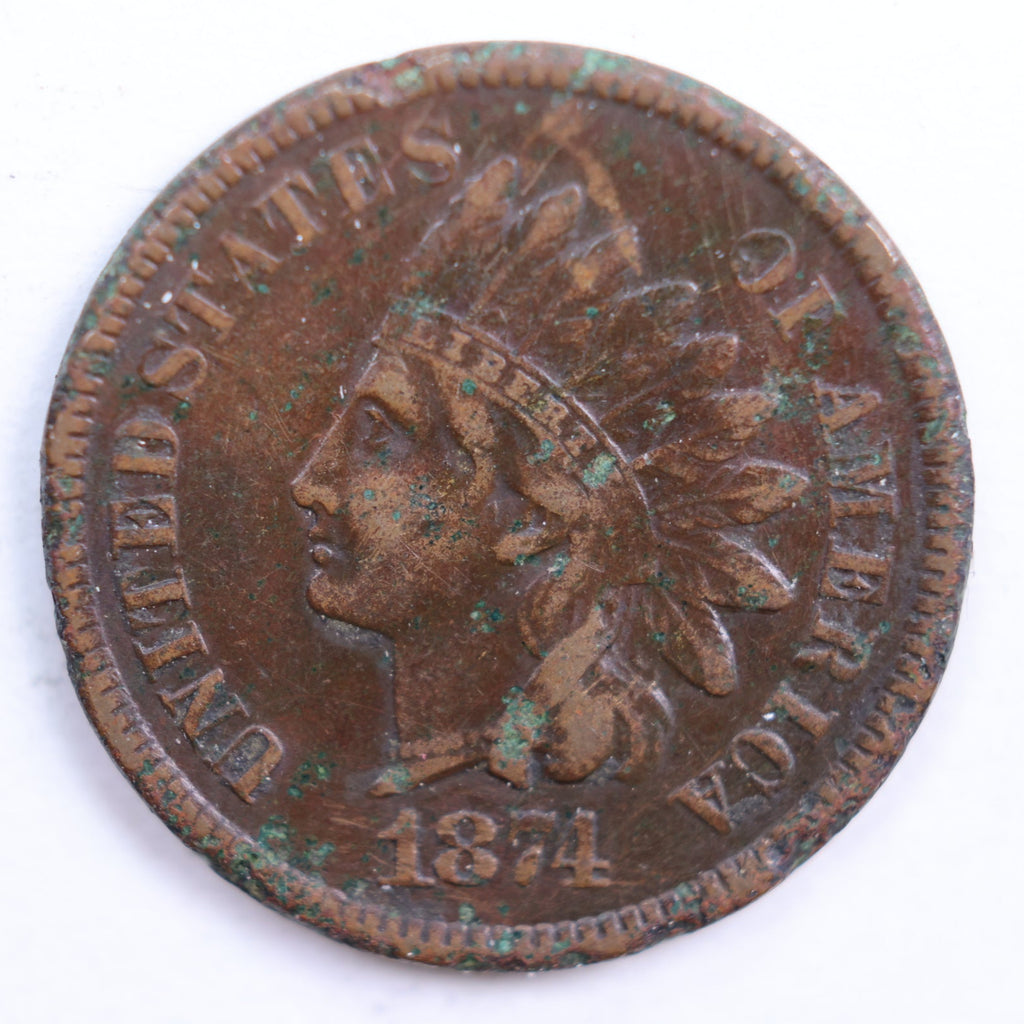1874 Indian Head Cent, Very Fine Circulated Coin, Store #CT0603