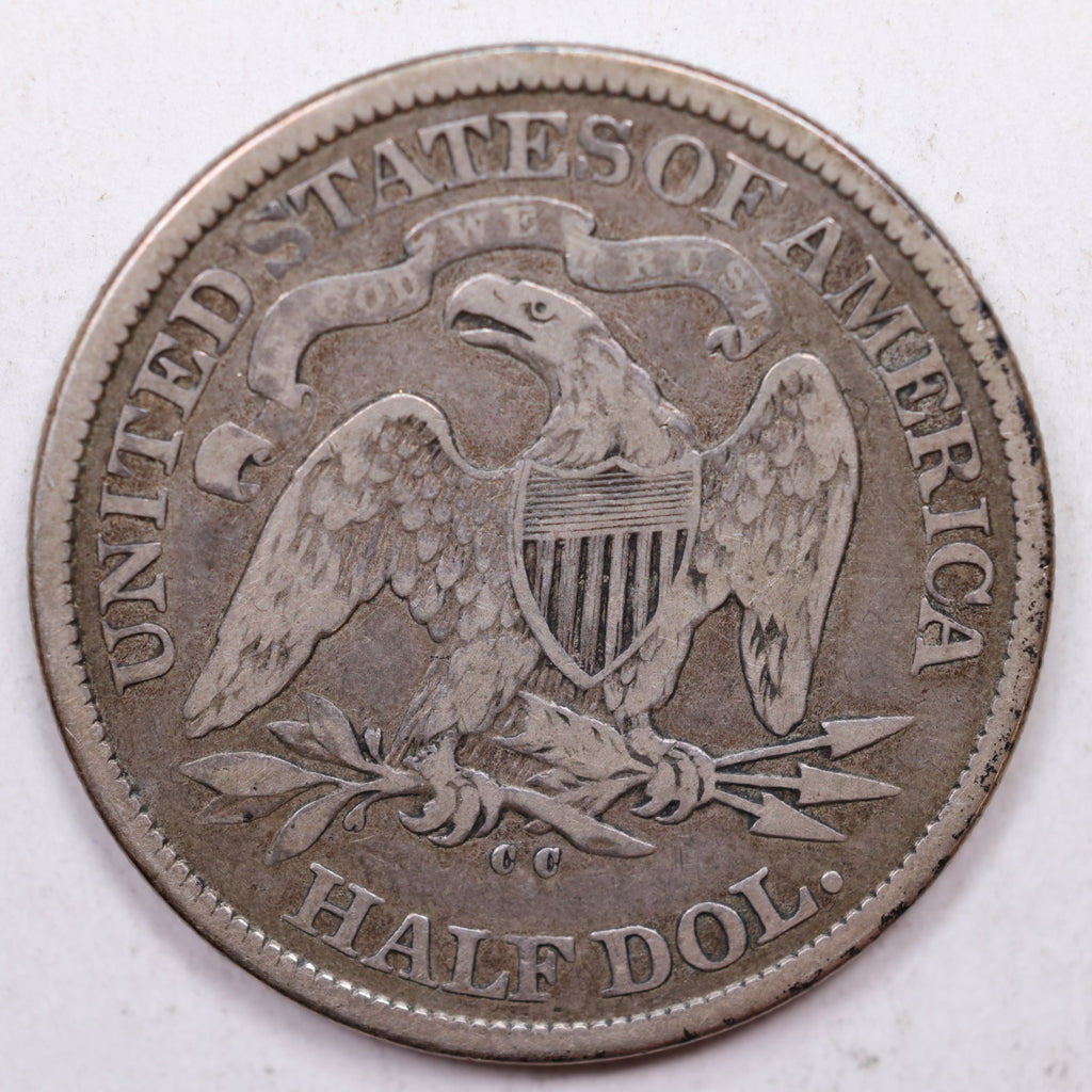 1875-CC Seated Liberty Half Dollar, 'Harder Date' Circulated Coin, Store Sale #HR0761.