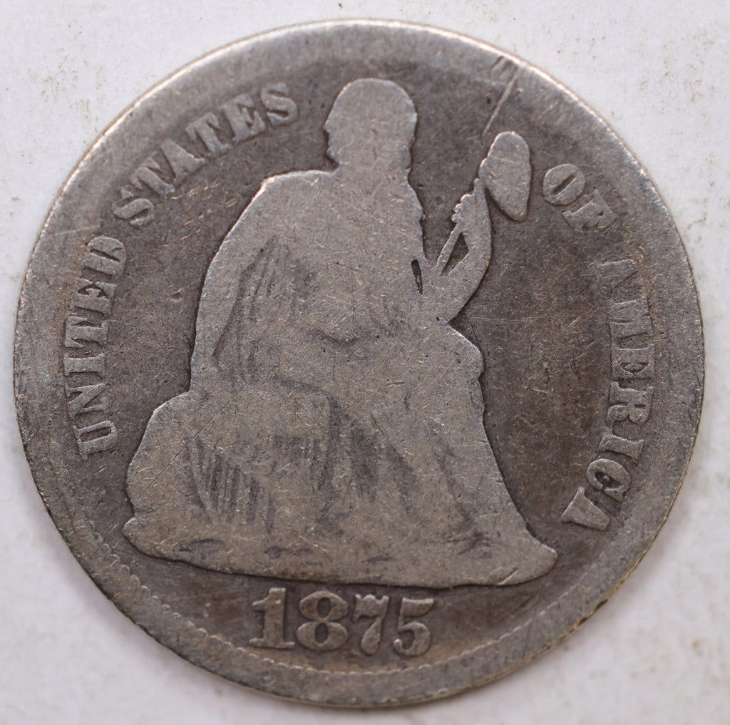 1875 Seated Liberty Dime, Collectible Circulated Coin, Store Sale #DE749.