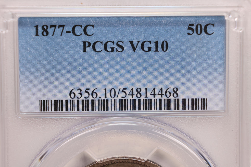 1877-CC Seated Liberty Half Dollar., PCGS VG-10., 'Rare'., Store #GHR0016